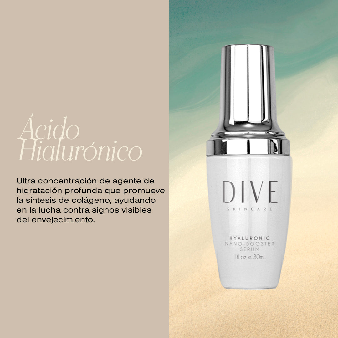 Sobre la piel limpia , toma una pequeña cantidad de Hyaluronic Nano Booster® en las yemas de tus dedos y masajea suavemente tu rostro en movimientos circulares, desde el centro hacia el exterior.
